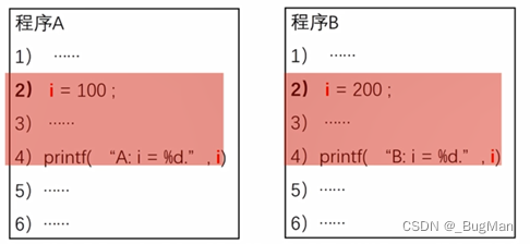 假设程序A去内存中读取了一个数据i,将这个数据改为i=100,在程序A的打印语句执行之前,程序B去读取了i并将这个数据改为了i=200,那么就会出现程序A期望打印的时候数据i是100,但实际上打印出来是1=200。这就是程序并发,造作内存中的共享变量带来的数据不一致的问题。