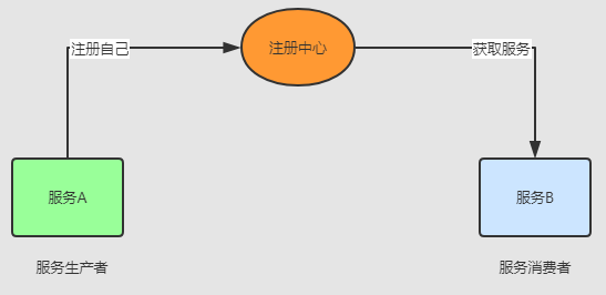 假设有一个服务B要远程调用服务A提供的服务,那么服务B就是服务消费者,服务A就是服务生产者。那消费者服务要怎样获取生产者服务的信息呢?对,这就是服务注册中心,消费者(服务B)并不会直接从生成者(服务A)获取服务信息,而是通过第三方的服务注册中心获取。生产者服务(服务器A)将自身的信息登记到注册中心上,服务B再通过注册中心获取服务A的信息。