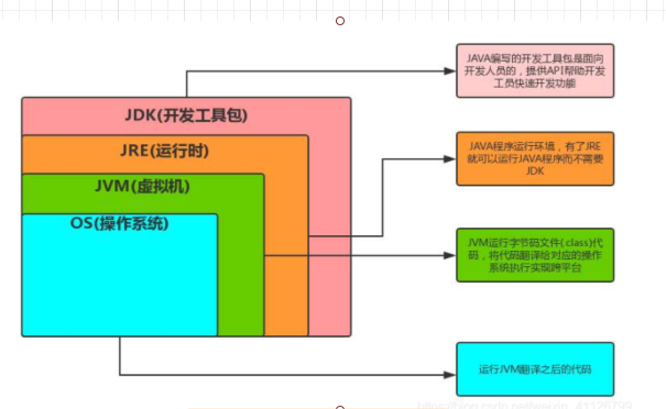 JRE:Java runtime(运行) environment(环境) 是运行基于Java语言编写的程序所不可缺少的运行环境,用于解释执行Java的字节码文件。