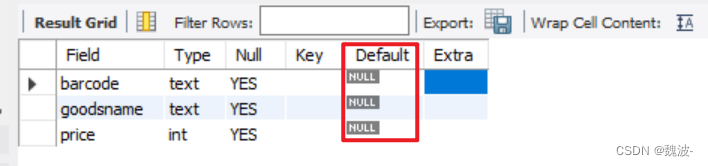 Null:表示这个字段是否允许是空值(NULL)。