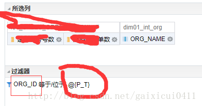 下面的例子中是,提示器是营销部,过滤器里是org_id.