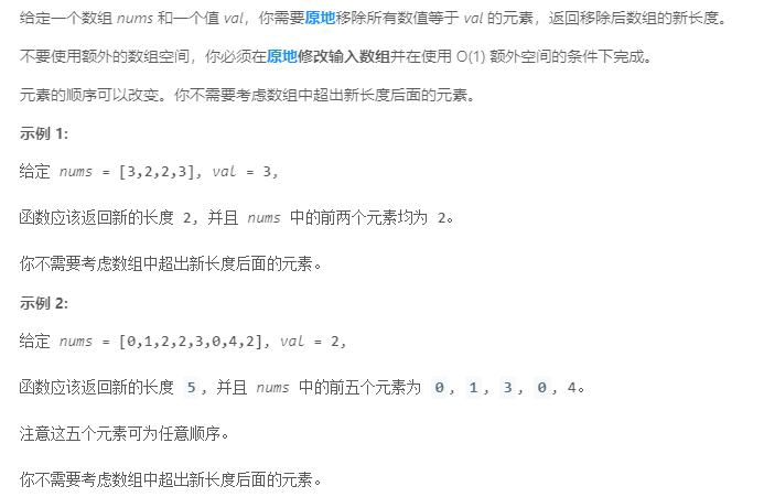 以上就是笑点低小馒头最近收集整理的关于LeetCode第27题:移除元素(JAVA实现)题目描述:我的解答:的全部内容,更多相关LeetCode第27题:移除元素(JAVA实现)题目描述:我内容请搜索靠谱客的其他文章。