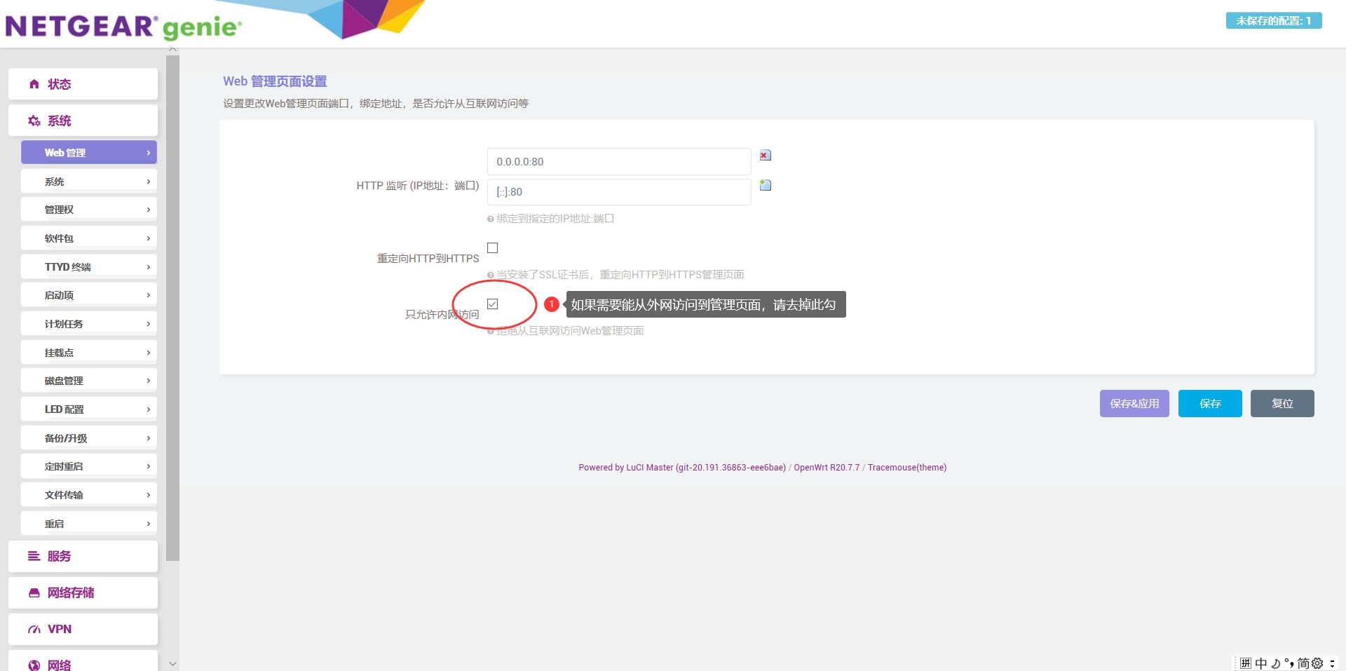 4,到系统->Web管理菜单下,勾掉“只允许内网访问”