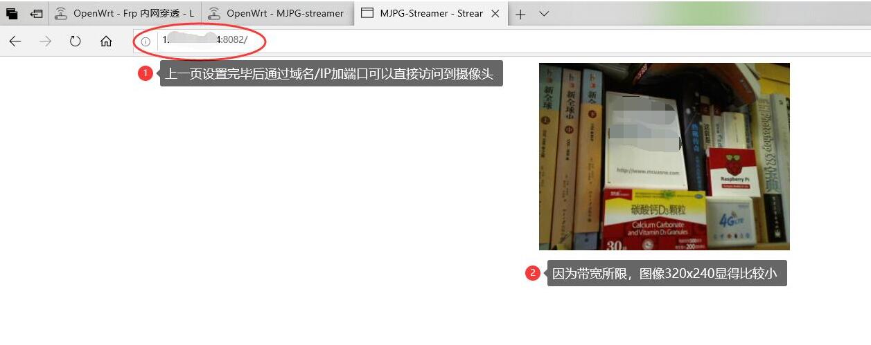 如果服务器网速足够,那么可以尝试提高摄像头的分辨率和刷新率。1Mbps带宽的服务器足够支撑320240分辨率的访问,10Mbps可以支持VGA,50Mbps可以支持720P。当前传输方式并没有对图像和视频进行编码,所以传输的数据量比较大