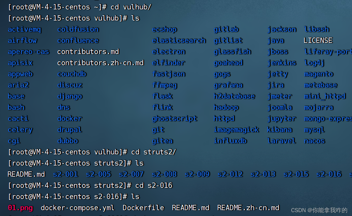 通过cd命令进入达到vulhub的靶场文件的位置。