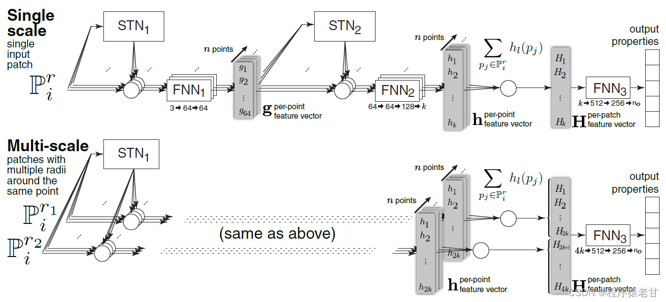FNN2是一个三层的全连接层,函数g能够被理解为一个不太复杂的点集函数。这个计算过程类似于原始pointnet中的h。
