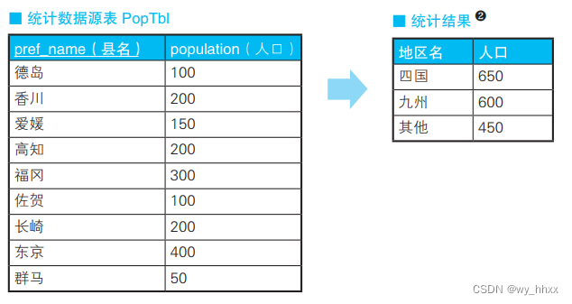 说明:这里的GROUP BY子句使用的正是SELECT子句里定义的列的别称district。但是严格来说,这种写法是违反标准SQL的规则的。因为GROUP BY子句比SELECT语句先执行,所以在GROUP BY子句中引用在SELECT子句里定义的别称是不被允许的。事实上,在Oracle、DB2、SQL Server等数据库里采用这种写法时就会出错。不过也有支持这种SQL语句的数据库,例如在PostgreSQL和MySQL中,这个查询语句就可以顺利执行。