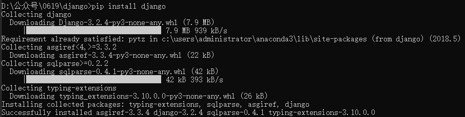 通过上面的命令可以安装好django环境