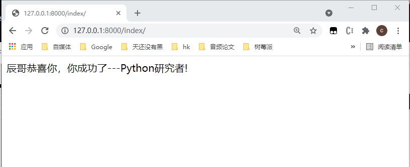 return HttpResponse("辰哥恭喜你,你成功了---Python研究者!")