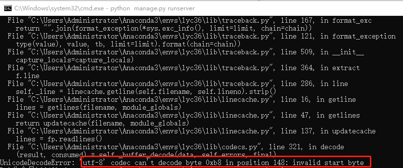 在启动项目的时候,如果出现上面这种报错的情况,说明你刚刚编辑的文件保存为非UTF-8格式。改为UTF-8格式即可。
