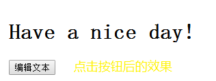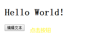 <body> <h1 id="myHeader">Hello World!</h1> <button onclick="displayResult()">编辑文本</button> </body>