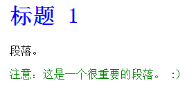 <body> <h1 class="intro">标题 1</h1> <p>段落。</p> <p class="important">注意:这是一个很重要的段落。 :)</p> </body>