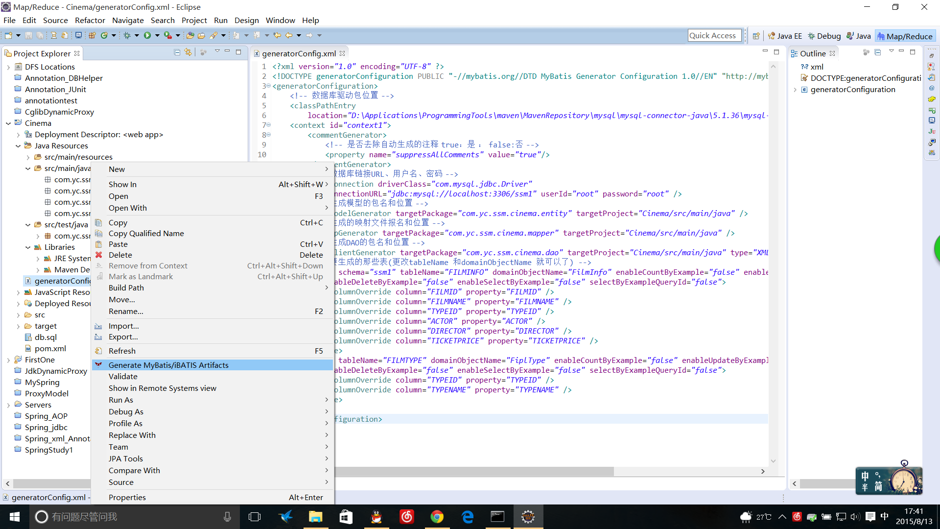 这个配置就是指定targetProject的路径为Cinema项目下的src/main/java包下面。
