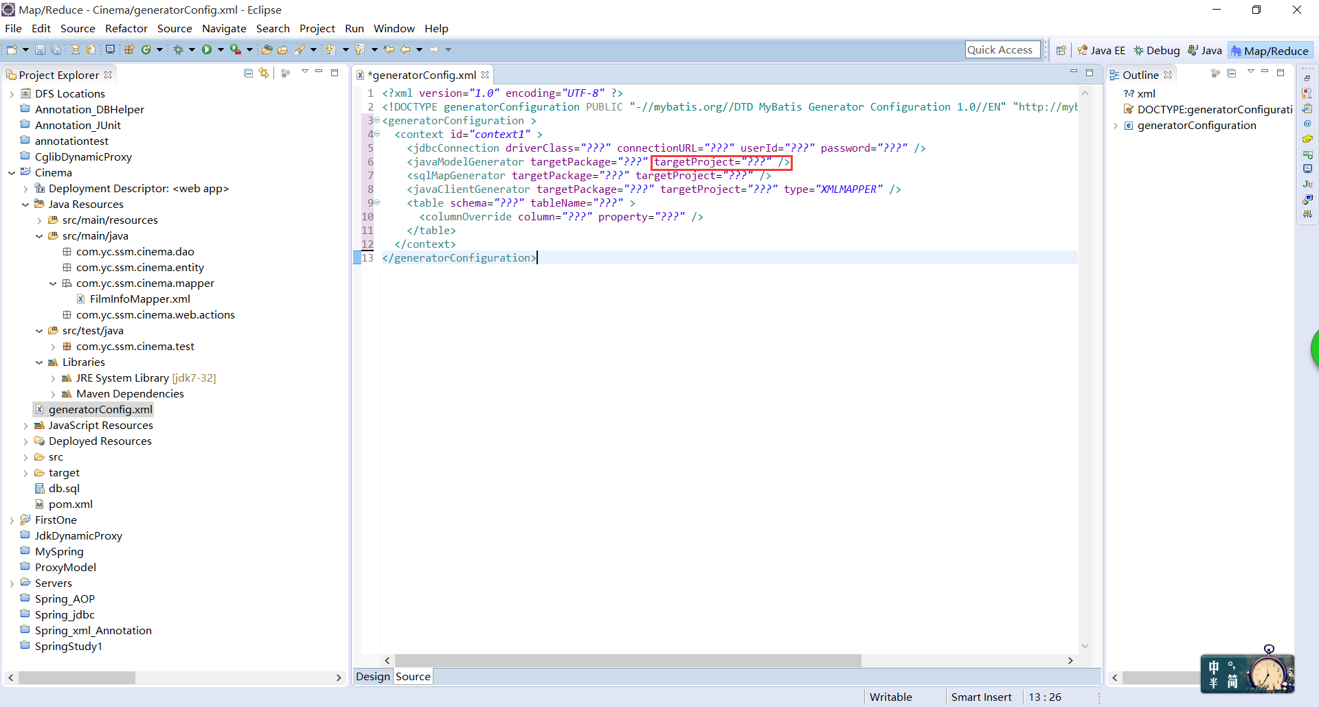 - <javaClientGenerator targetPackage="com.yc.ssm.cinema.dao" targetProject="Cinema/src/main/java" type="XMLMAPPER" />