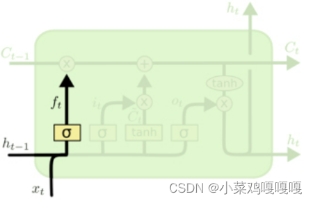 遗忘门:是模型最先通过的门控,它决定着我们要从细胞状态(Ct-1)中丢失什么信息。