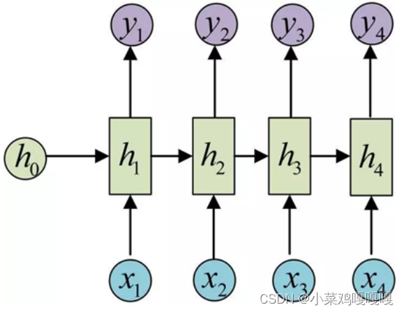 RNN的输入数据通常时一组具有时序信息的序列,输出则是图中y1,y2…yn这些隐藏状态组成的向量。通常用yn来代表最终的输出。