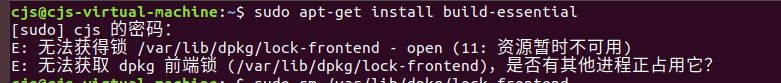以上就是追寻柠檬最近收集整理的关于【ubuntu】E: 无法获得锁 /var/lib/dpkg/lock-frontend - open (11: 资源暂时不可用)和E: 无法获取 dpkg 前端锁1、遇到问题2、解决方法的全部内容,更多相关【ubuntu】E:内容请搜索靠谱客的其他文章。