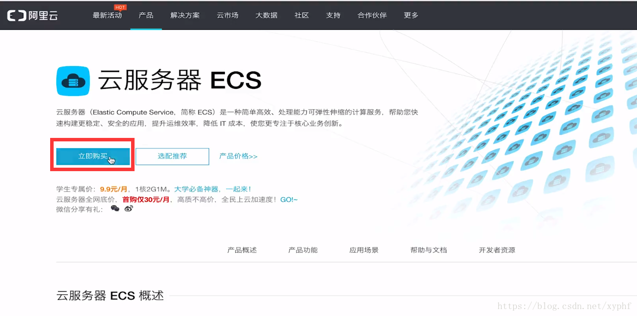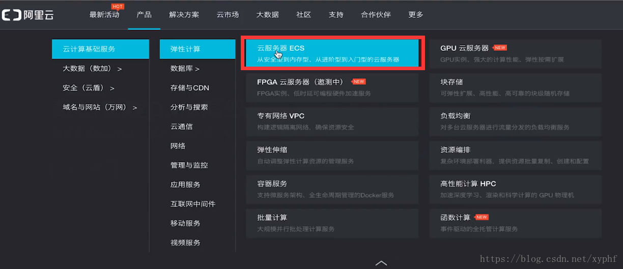 我们进入阿里云官网,选择【云服务器ECS】