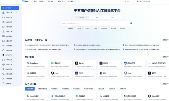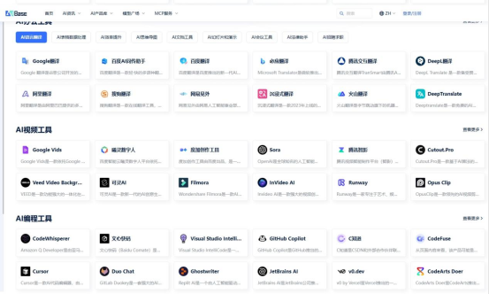 覆盖广泛:系统收录国内外主流AI工具,涵盖文本生成(如大语言模型)、图像创作、音视频处理、编程辅助、办公提效等全类别。