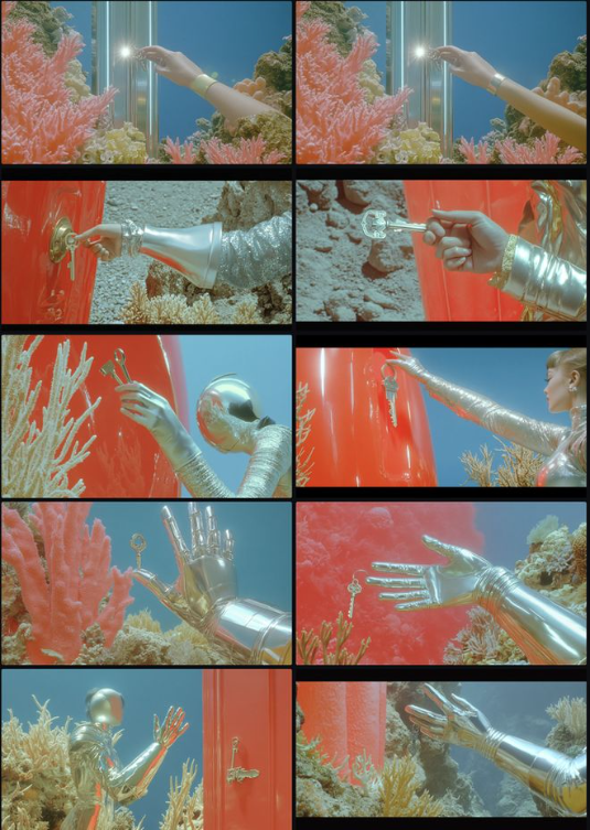 为了确立整体的视觉基调,他们也从一些经典作品中汲取灵感。金华表示,捷克斯洛伐克动画《原始星球》(Fantastic Planet)和电影《未来学大会》(The Congress)中怪诞而有趣的超现实风格,给了团队很大的启发 。此外他们在前期就定下了“复古科幻”的基调,并将相关的提示词贯穿始终,以锚定作品的整体美学。