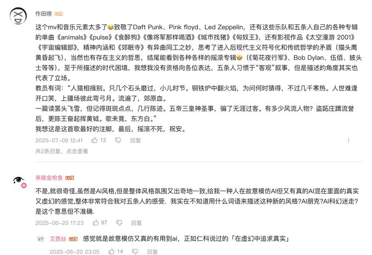 “AI生成的内容,也有一种新时代的塑料感。粗粝的技术感与乐队的气质形成了奇妙的共振。两者达到了某种一致性。”
