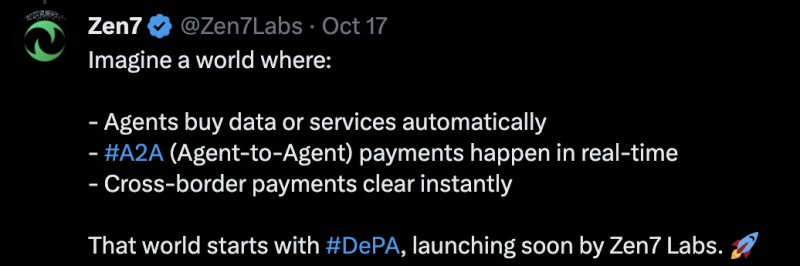在 AI Agent 经济快速崛起的当下,支付正成为限制智能体自主交易的关键瓶颈。面对传统支付费率高、加密支付操作复杂、平台生态碎片化等行业痛点。近日,Zen7Labs正式提出DePA(Decentralized Payment Agent,去中心化支付智能体)概念,并率先在 GitHub 上开源其核心产品Zen7Payment Agent。Zen7Labs 是一家专注于智能计算与 Agent 技术创新的国际化团队,核心成员来自 Google、Oracle、阿里巴巴、京东等顶尖科技公司。凭借深厚的技术积累与全球化视野,团队正携手全球开发者共建开放生态,为万亿美元级的 Agent 经济注入新活力。