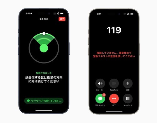 苹果允许用户通过卫星快速拨打报警电话(110)、海上保安厅电话(118)、火灾/急救电话(119)以及发送卫星消息,并通过卫星共享当前位置。例如,如果需要紧急帮助,用户可以长按侧边按钮和任一音量按钮,在屏幕上出现紧急求救滑块后立即呼叫紧急服务中心。此外,iPhone用户还可以使用“查找”功能与家人和朋友共享当前的卫星定位信息。