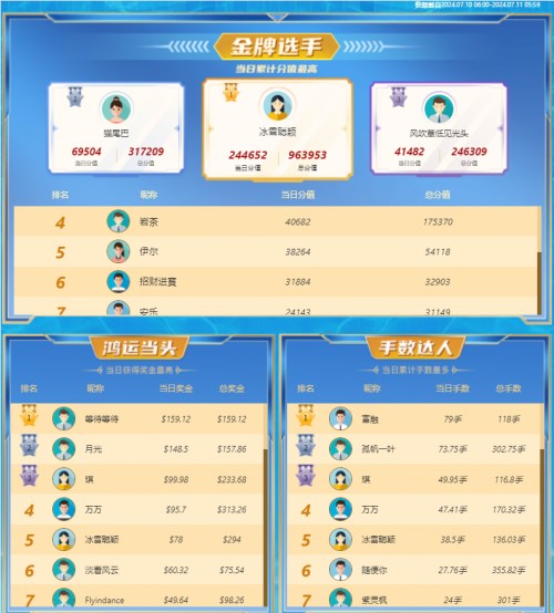 领峰环球以强大的赛事底蕴、丰厚的比赛奖金,吸引众多投资者加入,此番又有哪些大拿杀出重围,登上榜单前排位置?根据领峰环球官网最新出炉的战报显示,7月10日6:00-7月11日5:59比赛时段,@冰雪聪颖,以优异的战绩领跑排行榜,坐稳“金牌选手”榜首位置;而@等待等待、富融二位选手,凭借当日奖金最多和当日手数最多的强势表现,将“鸿运当头”、“手数达人”两个榜单首位收入囊中!