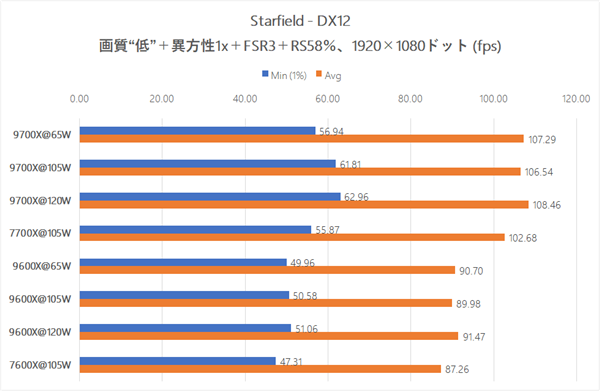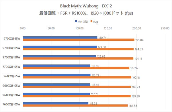 结果显示,不同模式下游戏性能无明显差异,即使是9700X的120W模式也未带来任何提升。