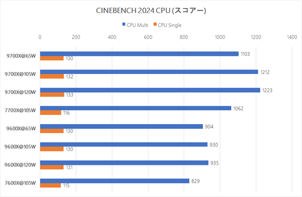 虽然游戏性能没有提升,但多核性能却有所提升。在Cinebench 2024中,9700X的性能提高了10%,9600X的性能提高了3%。