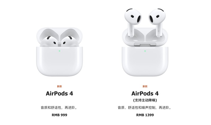 国行版AirPods 4的售价为999元,支持主动降噪的AirPods 4售价为1399元, 9月20日发售。