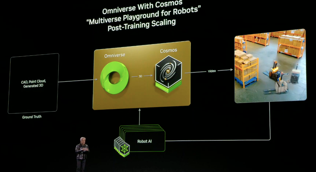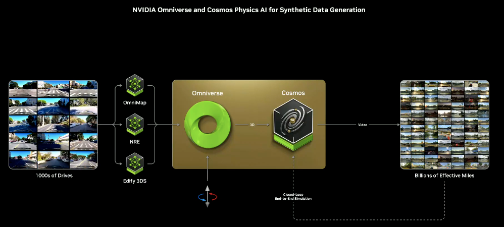 将 Omniverse(一个用于构建 3D 应用程序和服务的应用程序编程接口和微服务开发平台)与 Cosmos 相结合,通过其高度可控、物理精确的仿真提供关键保障,有助于最大限度地减少世界模型常见的幻觉问题。