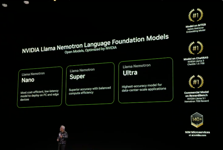 黄仁勋还宣布推出 Llama Nemotron,分为Nano、Super和Ultra三档。Llama Nemotron Nano 模型将作为面向 RTX AI PC 和工作站的 NIM 微服务提供。