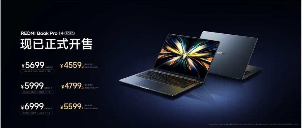 REDMI Book 14 Pro 2025 共三个版本,部分地区至高享 20% 国家补贴,U5+16GB+1TB版本优惠到手价¥5699,国补后最低¥4559.2; U5+32GB+1TB版本优惠到手价¥5999,国补后最低¥4799.2; U7+32GB+1TB版本优惠到手价¥6999,国补后最低¥5599.2,现已全面开售。具体活动期限、参与地区及具体要求以当地政府通知为准,活动详情请咨询官方工作人员。