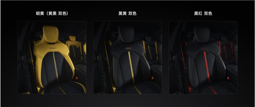 小米SU7 Ultra内饰不仅材质大幅升级,同时采用全新配色,大胆热烈的明黄(黄/黑双色)内饰、炫酷的黑/黄双色内饰、低调有内涵黑/红双色内饰;舒适性方面,小米SU7 Ultra座椅前排配备座椅通风,新增座椅按摩、双排增加石墨烯加热。同时,全车座椅造型、填充物升级,侧翼高度提升,包裹性、舒适性更好。