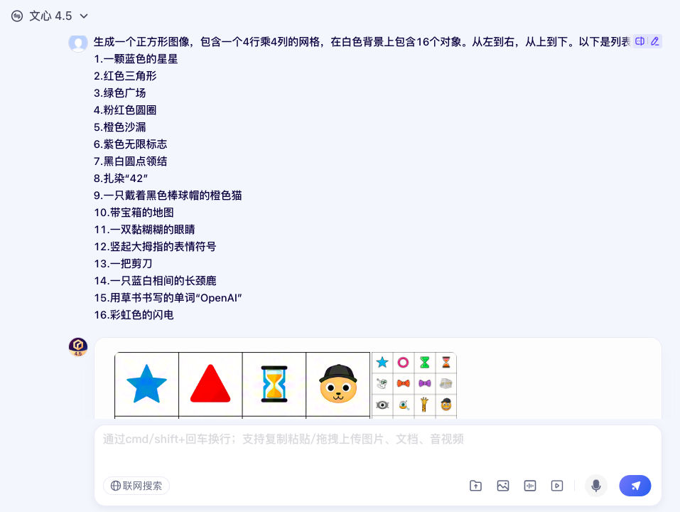 这里,我们用示例3的指令,分别测试了文心一言(文心大模型4.5)、豆包APP。