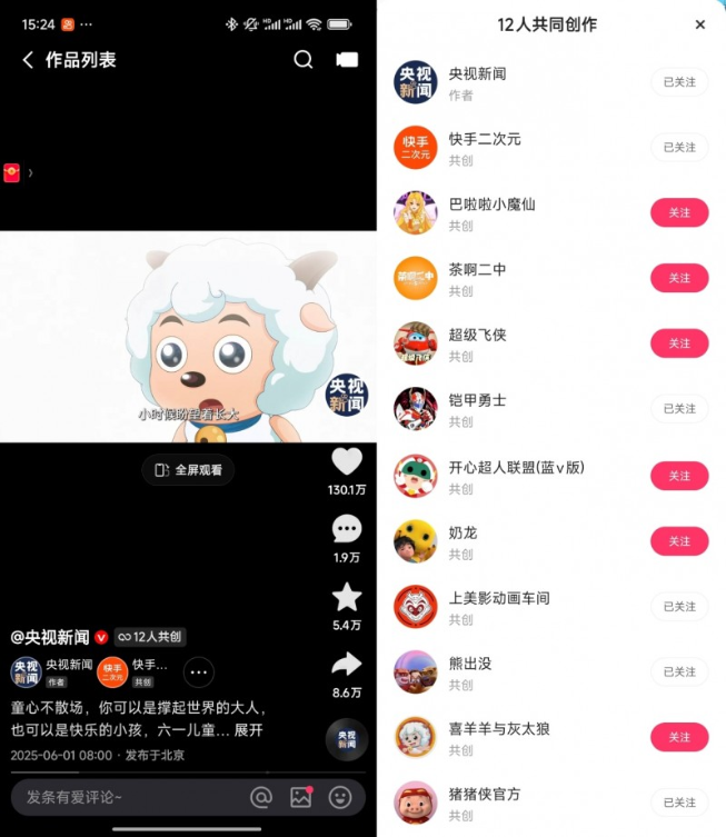 央视新闻快手号联动二次元经典IP 重构儿童节仪式感