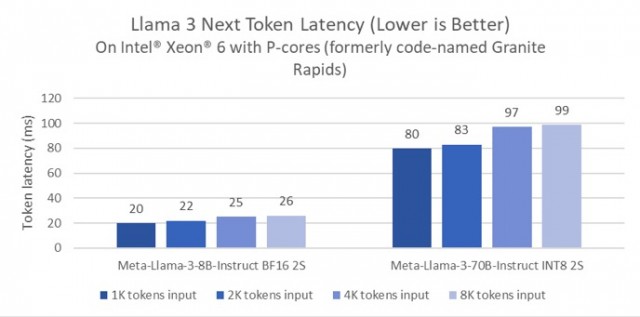 基于英特尔至强 6性能核处理器(代号Granite Rapids)的Llama 3下一个Token延迟