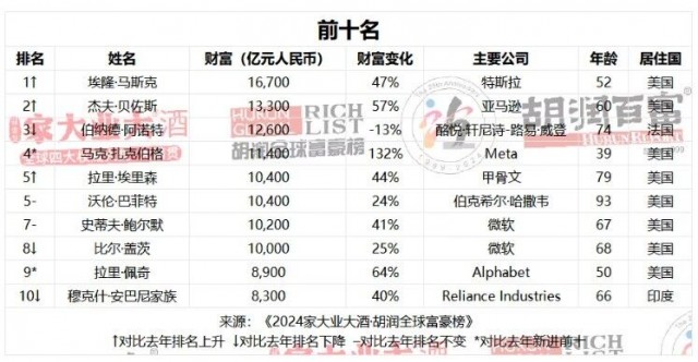 2024胡润全球富豪榜发布,在榜单介绍说明中,官方写道:AI今年第一次深度影响胡润的全球富豪榜,一半以上的新增财富是来自于AI。