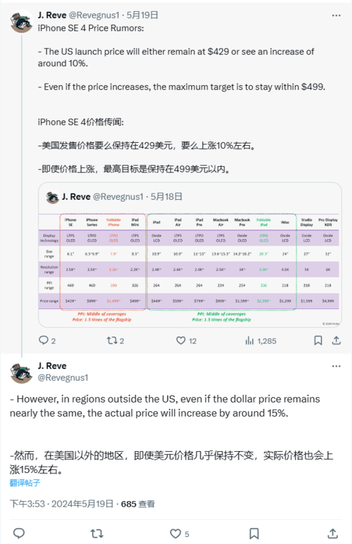 值得注意的是,苹果通常会对其产品进行“重大重新设计”,同时也会相应地提高价格。例如第四代iPad Air和第十代iPad等产品都经历了全新设计并伴随着大幅涨价。因此,在即将到来的新一代iPhone SE上出现类似情况并不令人意外。