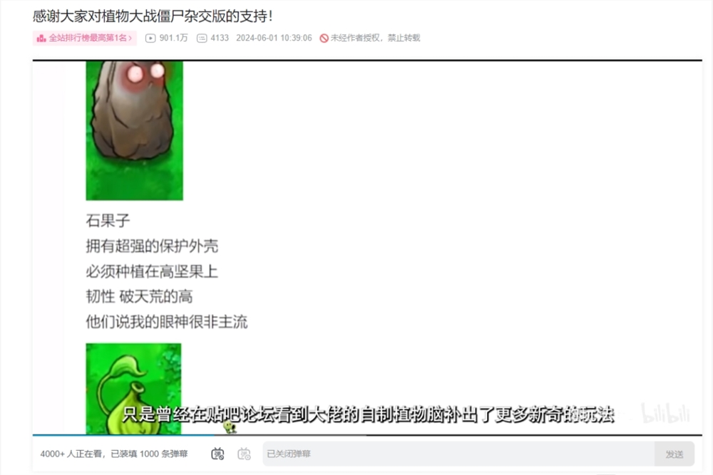 6月1日,B站UP主「潜艇伟伟迷」发了一个视频,标题是「感谢大家对植物大战僵尸杂交版的支持!」。