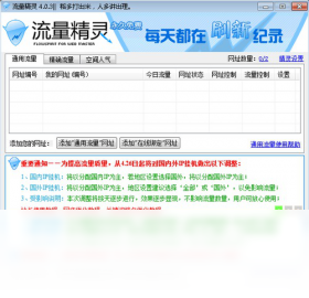 流量精灵是一款针对网站站长、个人博客、网络写手、网站推广、网络营销、网店推广等各类网络从业人员,用于提高网站流量,店铺/商品浏览量,网页PV(访问量),UV(独立访客),IP(独立IP)等的免费网络推广软件。注意:只有在软件运行时,您的网址才会分享流量,退出软件后,您的网址将无法继续分享流量。