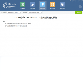 全球最强大的苹果管理设备iTools推出了全新的越狱助手,一键越狱,安全快捷,这是一款新的苹果越狱刷机工具,一键越狱、最新固件更新、文件管理、数据备份等功能轻松搞定。itools越狱助手提供越狱及相关功能,让你的苹果设备更加强大。