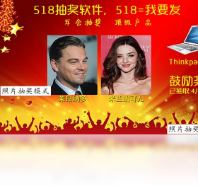 518抽奖软件,518即"我要发",顶级年会抽奖软件,极简设计风格。含文字号码抽奖、照片抽奖两种模式。适用场合:用于:年会抽奖、婚礼抽奖、开盘摇号、促销抽奖。支持:姓名抽奖、号码抽奖、数字抽奖、照片抽奖。