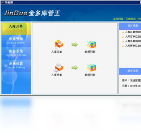 金多库管王5000是目前国内最佳企业级仓库管理系统。界面采用联想输入设计、输入速度快、操作灵活。商品、供应商、客户支持分类管理功能。 软件支持小数位自定义,可自由设定单价数量0-8小数位。智能提示客户上次价格和客户预售价管理。是一款界面伙伴、灵活、易操作、通用性强、实用性高的货物管理软件。
