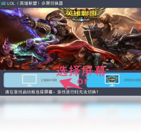 LOL(英雄联盟)多屏切换器是一款针对《英雄联盟》游戏时的屏幕选择工具,游戏进行前多个屏幕可以随意切换选择。