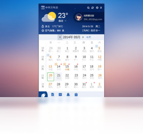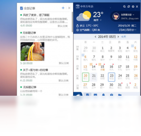 这是一款强大的桌面日历软件,它界面简洁,操作简单,小巧而且不占用系统资源~实乃居家旅行、必备良品!农历、公历、黄历,历历在目。实时天气、天气指数、未来天气,气象随手掌握。传统节气、常用节日、放假安排妥妥搞定,麻麻再也不用担心我的节操。记心情、记感悟、传照片、保存的记事连起来可绕地球三圈~贴心提醒、智能代办,身患多年的拖延症不药而愈。多个平台、一个账号,便捷安全数据不丢失。