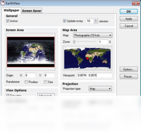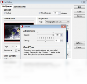一款有趣的动态桌面背景及屏幕保护程序。它能让我们在桌面上直接看到从外太空鸟瞰地球的景观,包括日光照射区及夜晚的黑影区。能产生高达1600x1200高品质解析度的画面,显示模式可以地图(map)或地球仪(globe)的方式呈现。其它的信息还包括地理疆界、国界、地形、城市分布等,都能由使用者自行修改选项及设定参数,达到绝佳的观看效果。