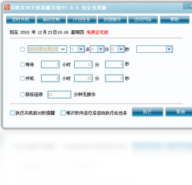 宣皓定时关机提醒系统,是一款完全免费的定时提醒系统。宣皓定时关机提醒系统基本的九大功能:定时关机、定时重启、定时锁定计算机、定时打开网址、定时关闭指定的程序、定时断开网络、定时提醒、定时切换。