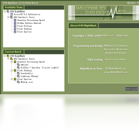 D3D RightMark是一款免费的D3D性能综合测试工具,它可以对你的显示卡的D3D性能做出详尽的分析和比较。D3D RightMark支持最新的DirectX 9技术,测试项目有顶点着色、像素渲染、三角形生成……。